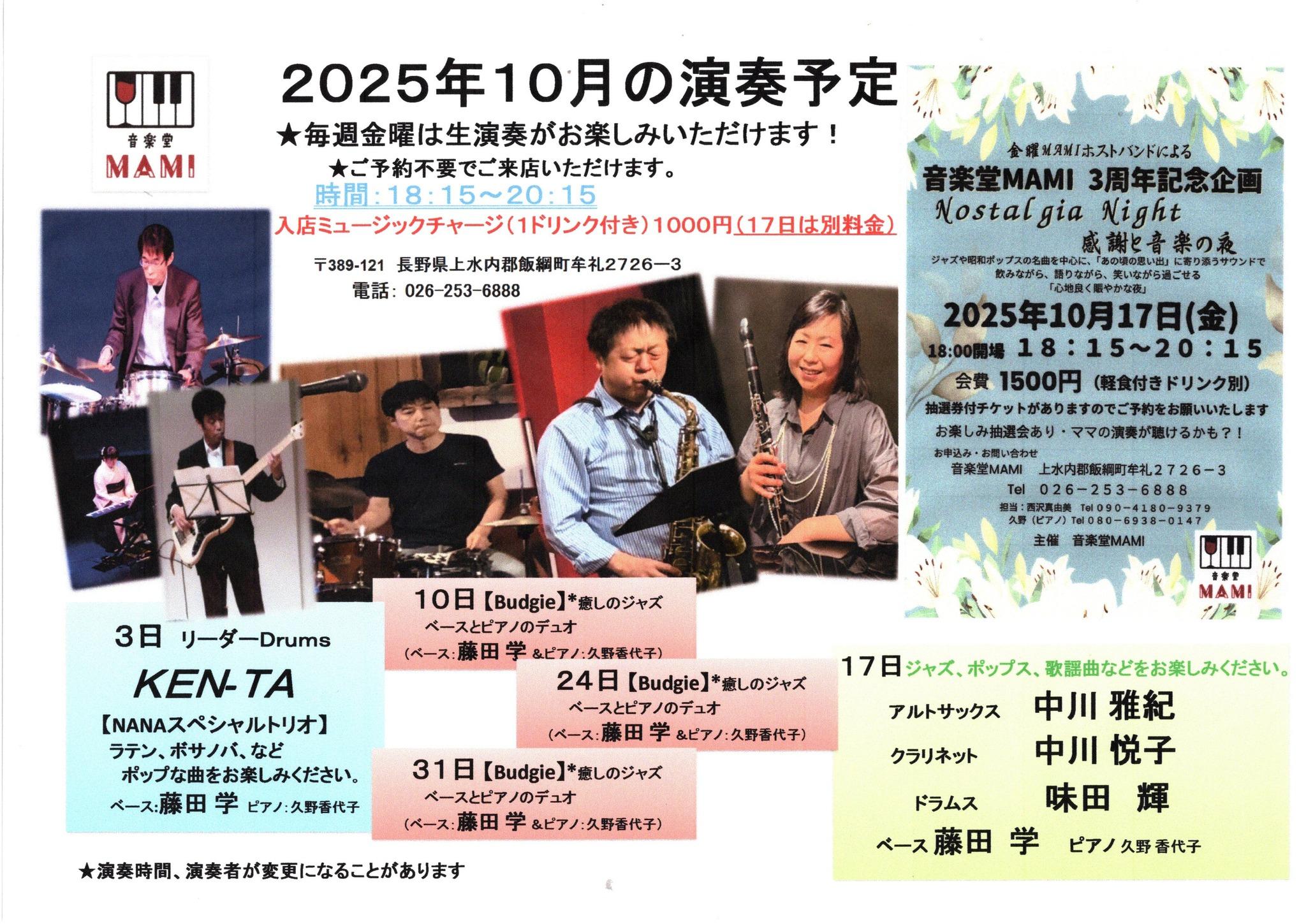 【生演奏】 | 生演奏をお楽しみいただけます。演者がいない日はジャズBGMをお楽しみいただけます。この時間帯はカラオケ設備はご利用いただけません。 |